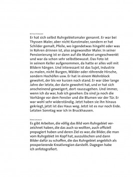 Wie bewusst sind sich diese Fotografen der Bilder, die sie (re)produzieren? Gibt es einen speziellen fotografischen Blick? Was ist das Charakteristische des Ruhrgebiets, damals, heute? Mich interessierte, welche Gedanken und Überlegungen hinter den Fotos stecken. Wie über Bilder gesprochen wird, vielleicht auch über die Grenzen eines fotografischen Bildes.